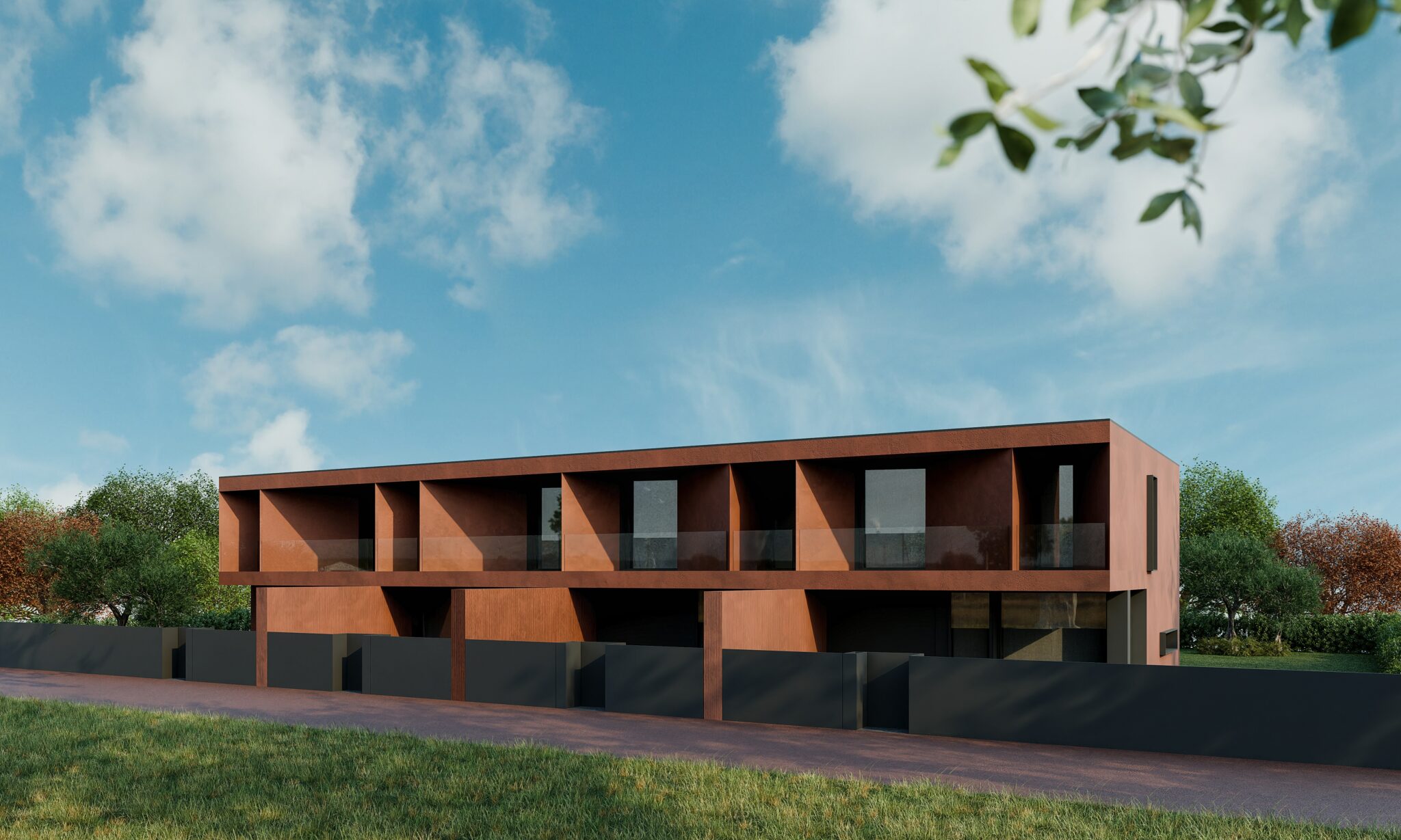 Il progetto nasce ai margini di un’area agricola, nel comune di Campagna Lupia, dove quattro case a schiera si inseriscono con discrezione e misura nel paesaggio.